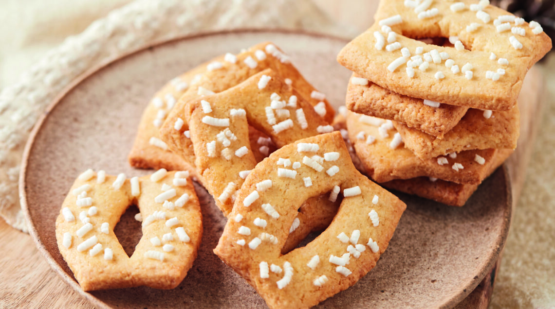 Adagiate i biscotti su una placca rivestita con carta da forno e allargate leggermente l’incisione fatta al centro dei biscotti. Spennellateli con un po’ di latte, cospargeteli di granella e infornate a 180° per 15 minuti.