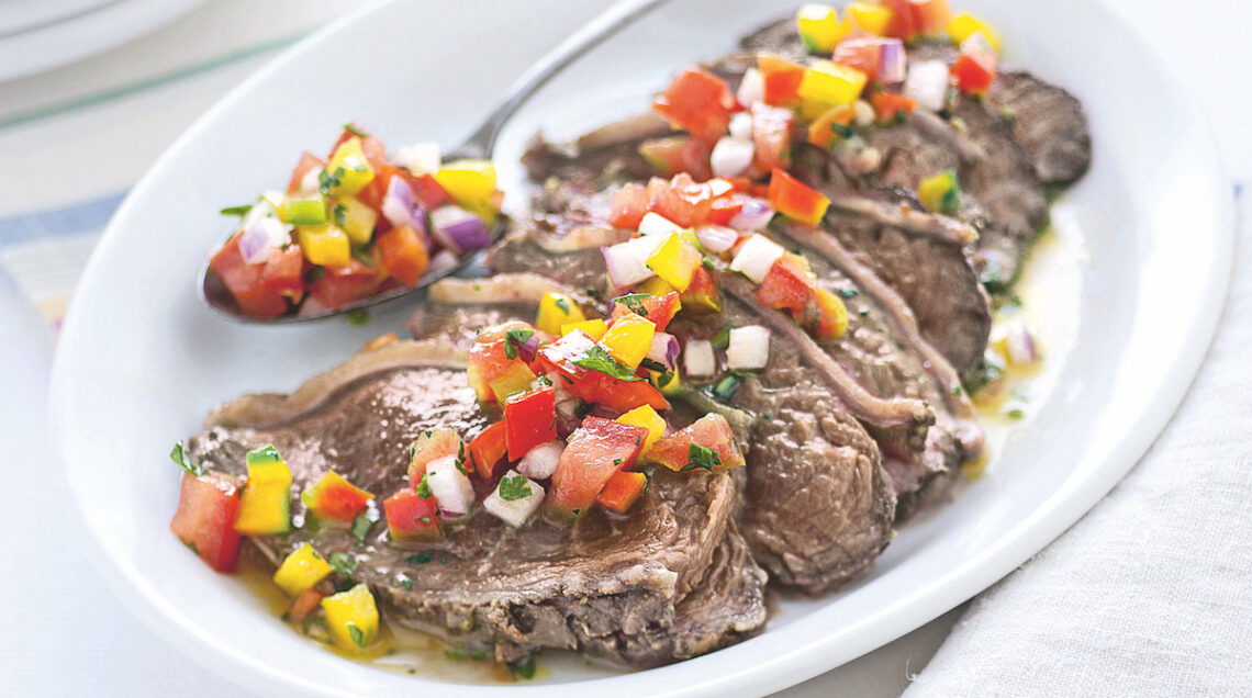 Scaldate bene una padella con un filo d’olio. Cuocetevi la picanha per qualche minuto fino al grado di cottura desiderato (vedi sotto), girando le fette solo una volta. Servite con la dadolata di verdure.