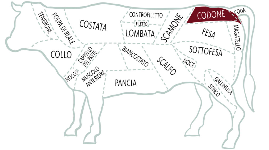 Rinomato per la sua succulenza, il codone è ottimo per bistecche, arrosti e per la celebre picanha della cucina sudamericana