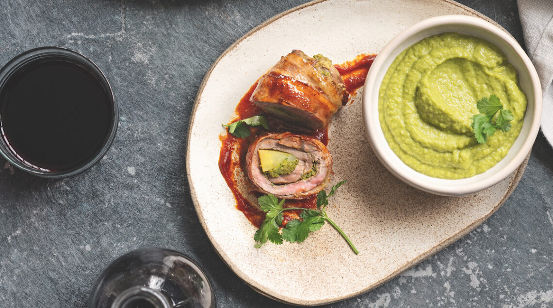 Eliminate la marinata dalle fettine di carne, battetele tra 2 fogli di carta da forno e spalmatele con la pasta speziata. Disponetevi sopra 1 spicchio di patata e arrotolate. Rivestite gli involtini ottenuti con la pancetta, fissateli con uno stecchino e rosolateli in padella con 4 cucchiai d’olio, girandoli su ogni lato. Unite la passata, 150 ml di acqua bollente e il peperoncino. Regolate di sale e cuocete con il coperchio e a fiamma bassa per 20 minuti.