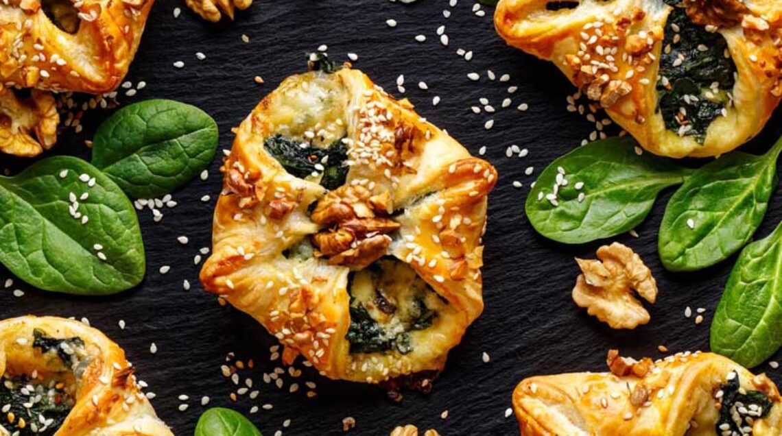 Fagottini green. Taglia a quadrotti una forma di pasta sfoglia, metti al centro un cucchiaio di spinaci passati in padella, un trito di noci o pinoli e pezzetti di formaggio. Porta i 4 angoli al centro lasciando visibile parte del ripieno verde. Cuoci in forno caldo per 10-15 minuti.