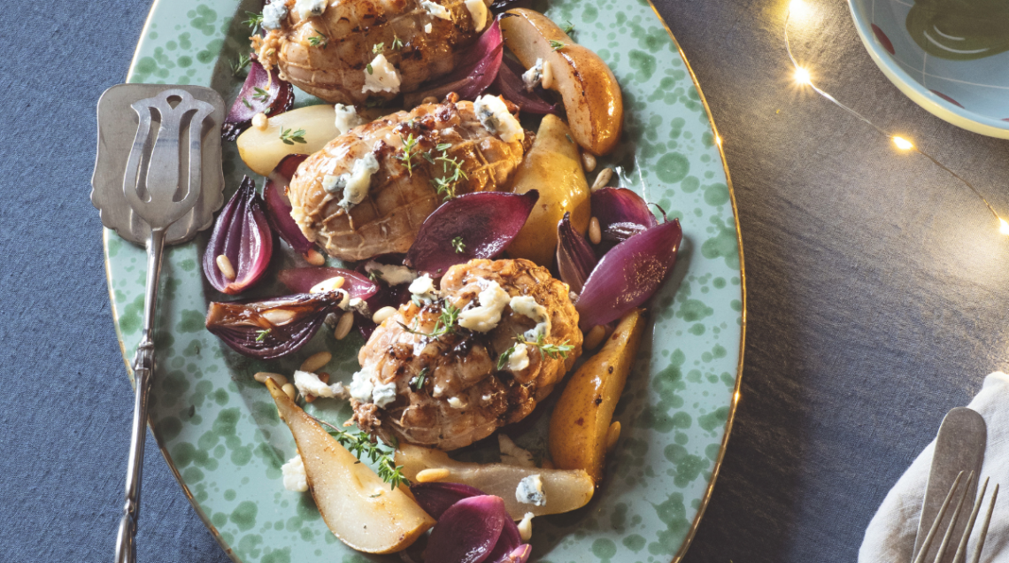 Sfiziosi e leggeri: mini rollé di pollo con pere e cipolle al gorgonzola