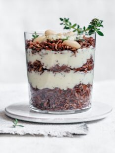 Riso rosso con cannellini, caprino, timo e olio al ginepro