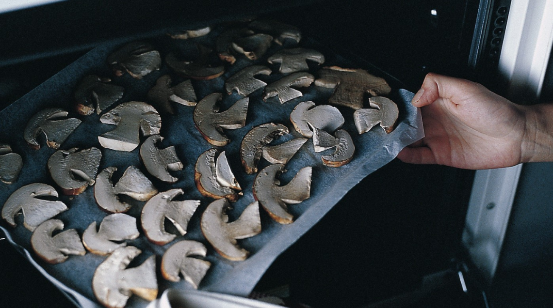 Essicazione con il forno: partiamo dal presupposto che questo metodo non è così veloce come il primo, richiederà tempi lunghi. Iniziate pulendo (sempre senz’acqua ma con un pennello o una spazzolina) e tagliando i funghi a fette non troppo sottili e stendetele su una placca foderata con carta da forno. Accendete il forno, meglio se ventilato, ad una temperatura molto bassa, 50-60° al massimo. Teneteli al caldo per circa 2 ore facendo attenzione a non chiudere mai lo sportello, tenetelo leggermente socchiuso. Passate le due ore sfornateli e riponeteli in vasetti asciutti, chiudeteli con il loro tappo e lasciateli in dispensa fino al momento dell’utilizzo. Attenzione, leggete bene: non lasciateli in forno più di due ore, se li essiccherete troppo rischiereste di gustarne il profumo facendolo svanire.