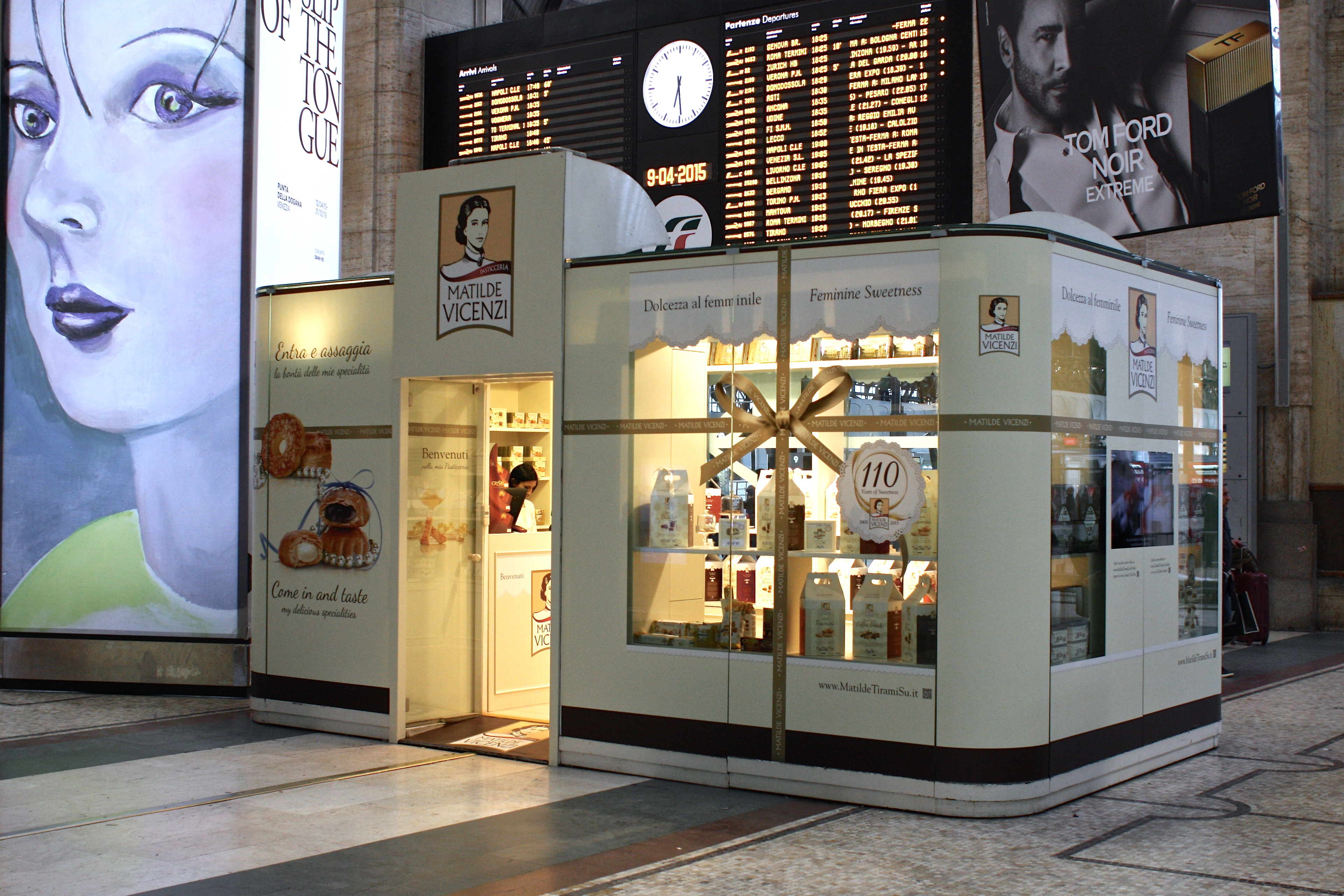 Nell’area fronte binari della Stazione Centrale a Milano, il viaggiatore frenetico viene catturato dal profumo del mondo di Matilde racchiuso in una location unica, che riproduce l’ambiente raffinato e accogliente di una pasticceria.