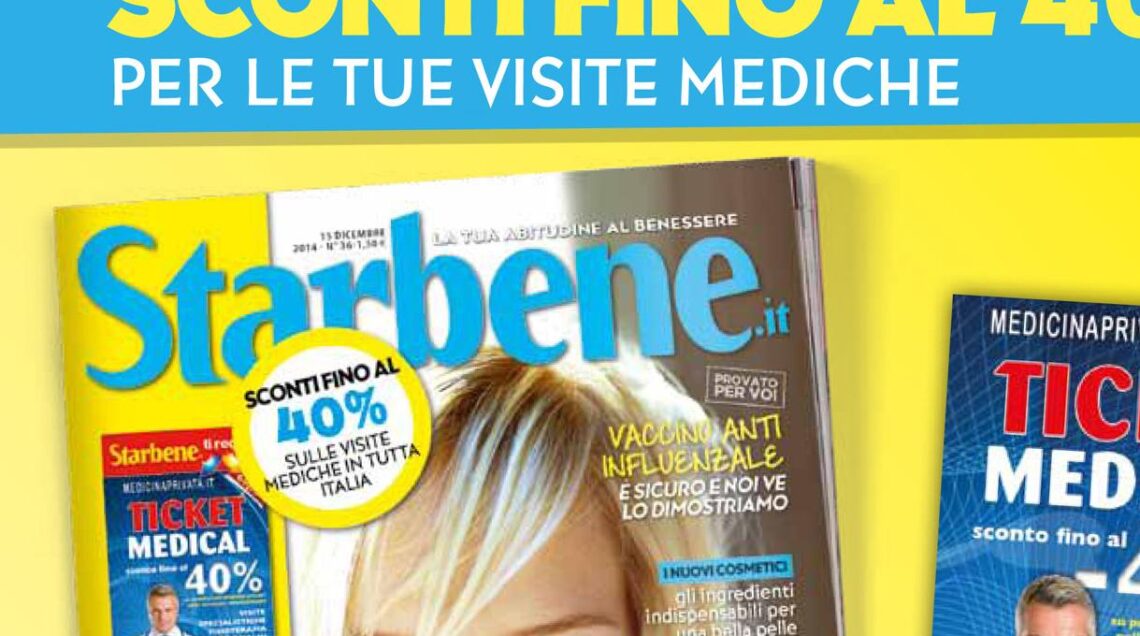 Starbene, il settimanale diretto da Cristina Merlino, lancia un’iniziativa speciale dedicata al benessere di tutta la famiglia. Con il numero in edicola questa settimana il magazine regala il Ticket Medical di Medicinaprivata.it: un ticket, del valore di 9,90 euro, che la testata riserva gratuitamente ai propri lettori per ottenere sconti fino al 40% su visite e analisi mediche in regime privato in tutta Italia.