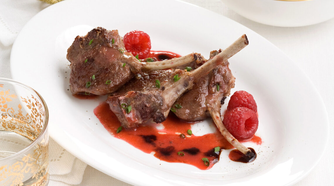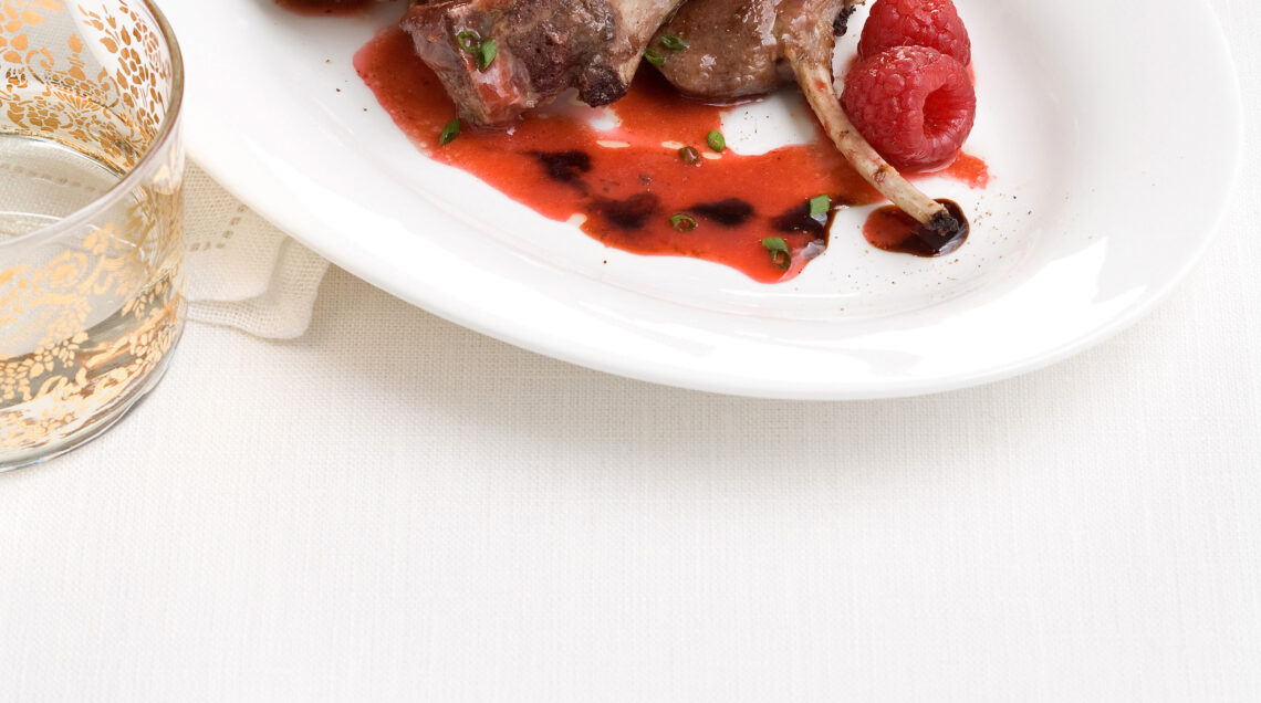 Rivisitazione creativa delle costolette a scottadito, un'antica ricetta dell'Italia centrale, che prevedeva costolette marinate con aglio, olio e rosmarino e poi cotte alla brace. Nella nostra ricetta la salsa di lamponi stempera il carattere selvatico della carne ovina, esaltandone gusto e sapidità. Se preferite potete sostituire i lamponi con fragole o ciliegie.