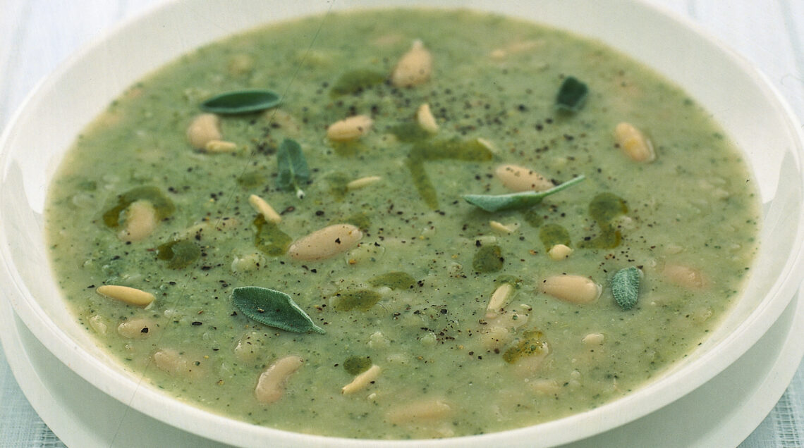 Un primo piatto pensato per il benessere, a base di legumi e ricco di verdure. Insaporito con erbe aromatiche, grana grattugiato e pinoli, è cotto con alga kombu che concorre a rendere la preparazione leggera e saporita, rinunciando completamente al sale. Un filo di olio, tanto basta per arrotondare il sapore. Buono caldo o, nella bella stagione, appena tiepido.