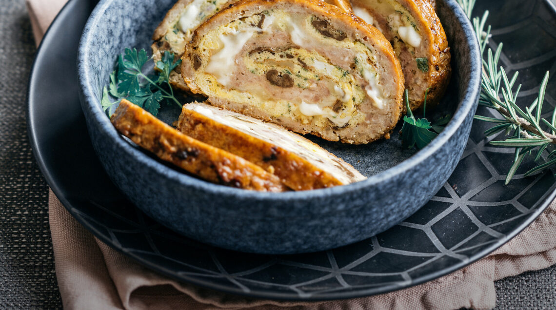 5) Arrotolate il polpettone, avvolgendolo a caramella con il foglio di carta ed infornatelo a 180° per 25 minuti.Toglietelo delicatamente dalla carta e rosolatelo in una padella antiaderente con il burro, un filo di olio ed il rametto di rosmarino.