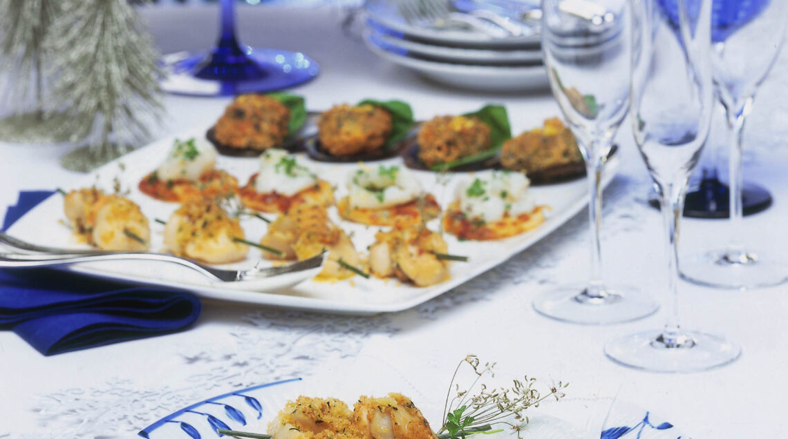 antipasti che possono essere sia caldi sia freddi o un assortimento di entrambi (per esempio, cocktail di crostacei, uova farcite, vol-au-vent, bignè ecc.).
