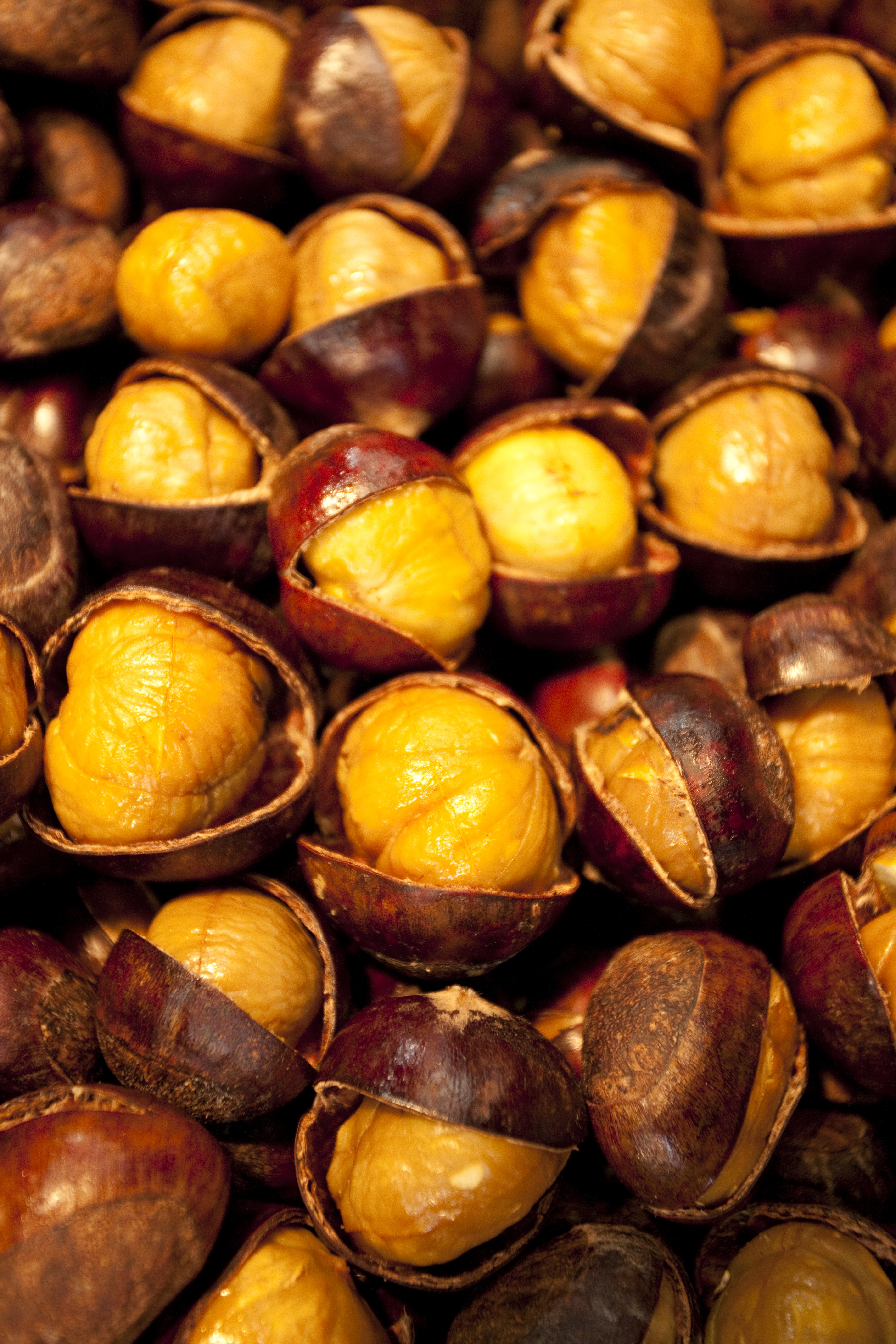castagna arrostita con la buccia in un’apposita padella di ferro forata, posata sulla brace o sul fuoco del camino. Prima di essere messa sul fuoco la castagna va sempre incisa al centro nella parte bombata, altrimenti potrebbe scoppiare. Per ottenere una cottura uniforme, le castagne vanno fatte saltellare nel recipiente che deve essere mosso ripetutamente.