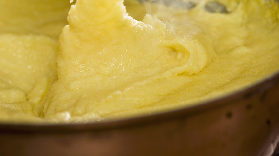 farina di mais e acqua. Nel Medioevo era fatta con fave pestate e mescolate con acqua e farina d’orzo oppure miele, cipolla e salvia, lungamente cotte nel paiolo. Era un cibo povero e mantenne questa caratteristica anche quando, più tardi – nel ’700 – cominciò a essere preparato solo con farina di mais. E così viene fatta ancora oggi, sebbene esistano altri tipi di polenta preparati con farine diverse, come quella di grano saraceno o di castagne.