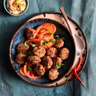 Nonostante il grado di “parentela”, ci sono ingredienti simili con alcune differenze nella composizione delle due tipologie di polpetta: le albondigas spagnole (foto sotto) odierne sono generalmente più piccole; la carne è un mix di vitello e di maiale in eguali proporzioni cui vengono aggiunti chorizo e pimenton (paprika affumicata); la scorza agrumata è d'arancia e non di limone.
