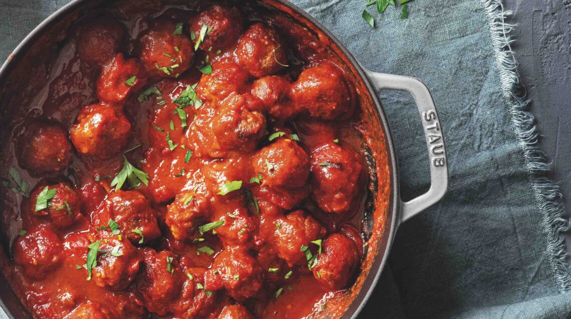 Le albondigas vengono fritte nell’olio e non nel burro, ben sgocciolate e, successivamente, passate in una salsa al pomodoro (a seguito dell’introduzione nella cucina iberica di quest’ultimo, importato dal Nuovo Mondo) preparata con un soffritto di cipolla, carota e tanto aglio, peperone verde o giallo a cubettini, pomodori freschi o pelati, timo, pepe, frullati insieme per ottenere una salsa densa. Vengono servite con riso bollito o, talvolta, nella salsa di pomodoro allungata con brodo di pollo, come una zuppa.