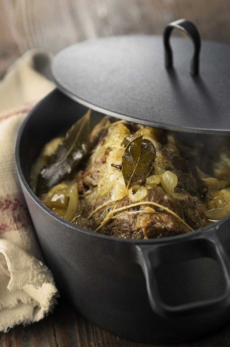 Stracotto indica una preparazione sottoposta a lunga cottura. Si tratta, in genere, di un pezzo di manzo, lardellato e rosolato in una casseruola, preferibilmente di terracotta, poi cotto con l’aggiunta graduale di vino rosso e talvolta di verdure. La cottura deve essere lentissima e il recipiente va mantenuto ben coperto, affinché la carne possa cuocere anche con la sua umidità.