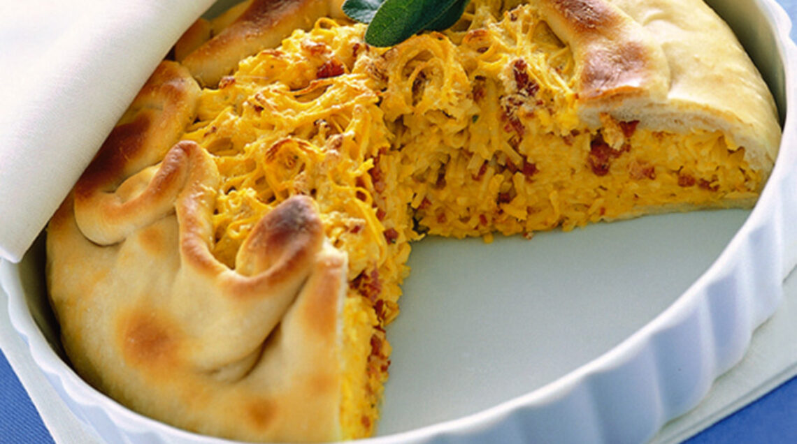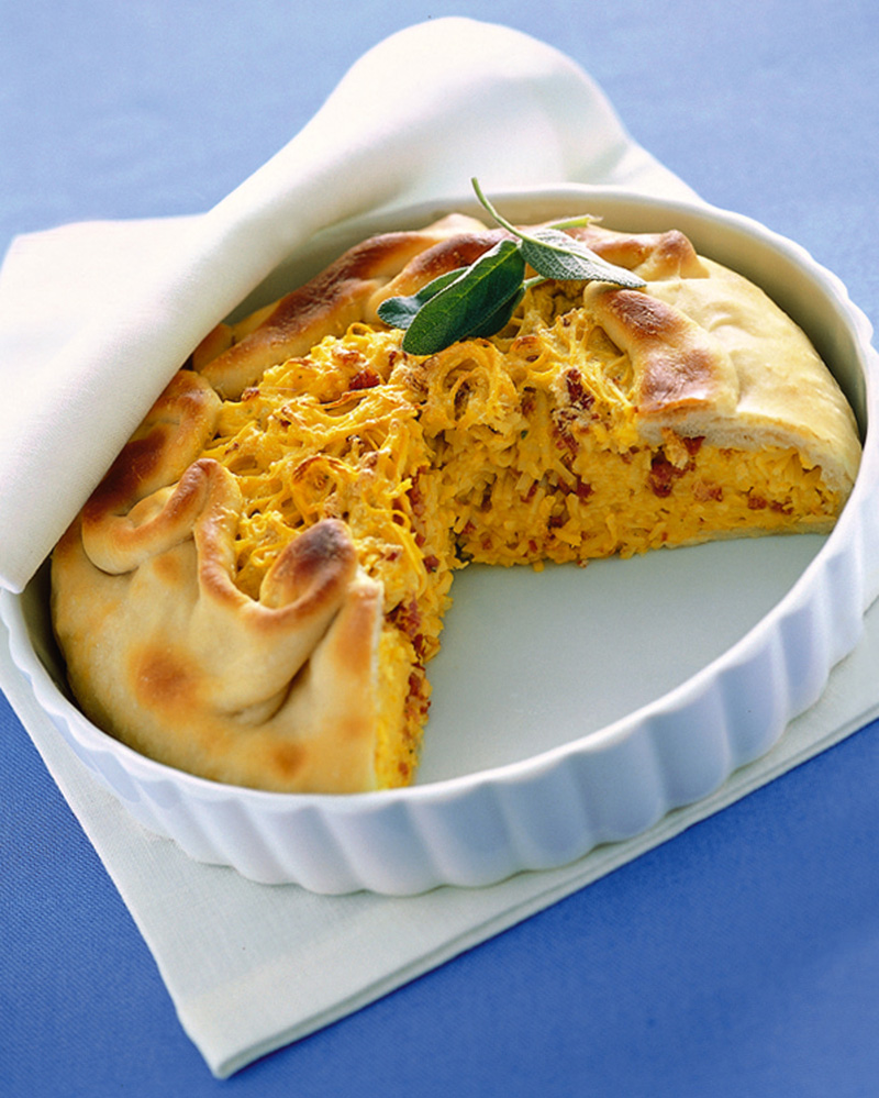 a base di pasta o riso conditi con sughi molto ricchi, racchiusi in un involucro di pasta frolla o brisée e cotta in forno in uno stampo cilindrico, con altezza uguale al diametro, da cui la preparazione prende il nome.