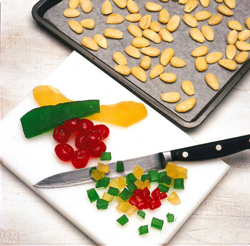 molto più dolce. La frutta da candire deve essere perfetta e non eccessivamente matura; può essere prima scottata in acqua bollente e,a volte,a seconda delle dimensioni, tagliata anche a pezzi.