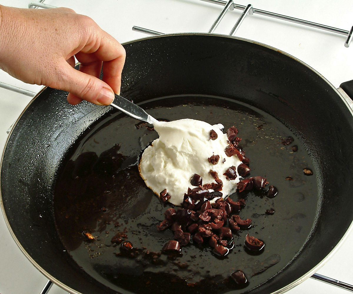 salsa scura: questa si fa poi ridurre a fuoco vivo finché acquista una certa consistenza. La salsa va poi di preferenza passata attraverso un colino,per renderla ancora più vellutata, la si regola quindi di sale e la si versa infine sull’alimento cotto.