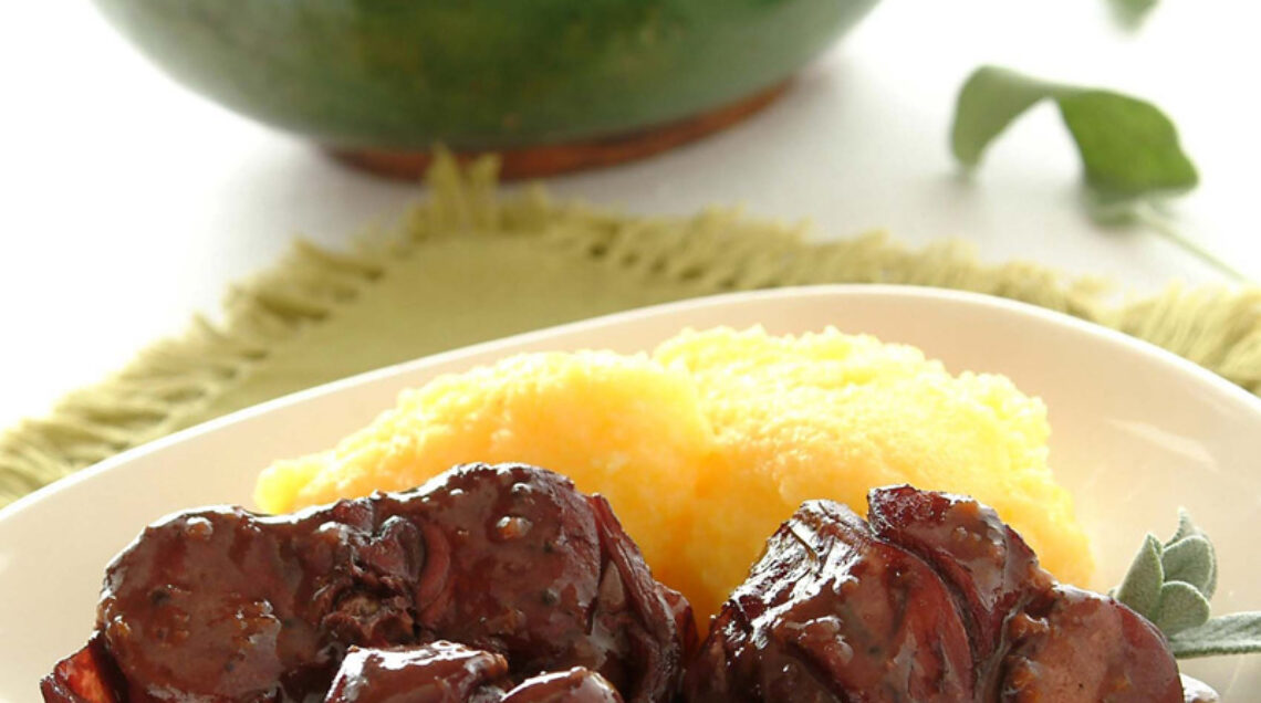 selvaggina. Questa viene fatta prima marinare, a pezzi, con aromi, spezie,vino e verdure, e poi cotta con l’aggiunta della marinata filtrata. Il fondo viene successivamente passato e arricchito con un distillato e con cacao amaro.