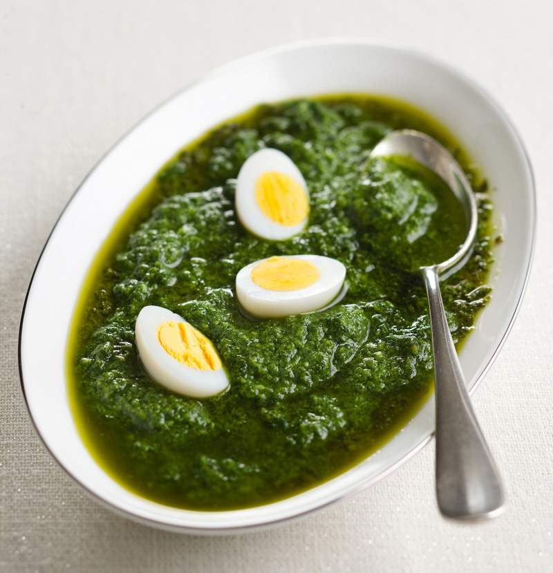 . È preparata con un trito fine di abbondante prezzemolo, mollica di pane bagnata nell’aceto, acciughe, capperi e cetriolini sottaceto.