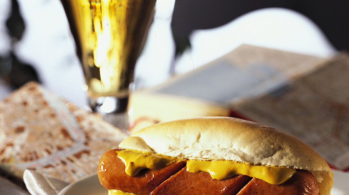 würstel caldo spalmato di senape. L’hot-dog è estremamente popolare negli Stati Uniti ed è molto venduto negli snack-bar e in piccoli chioschi.