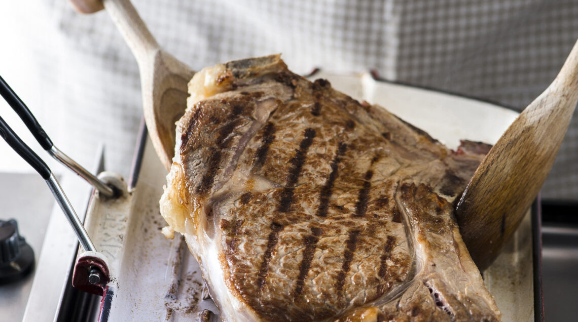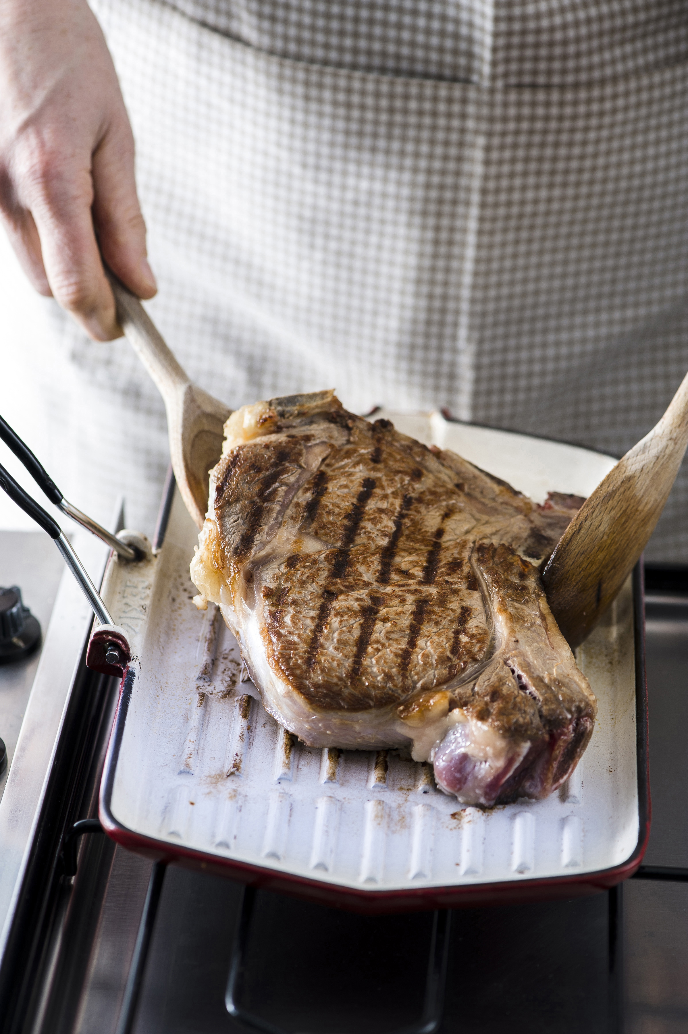 è la definizione data a una costata cotta alla griglia oppure in padella e servita tagliata a fettine di qualche millimetro di spessore, nappata con il suo fondo di cottura oppure con una salsa emulsionata.