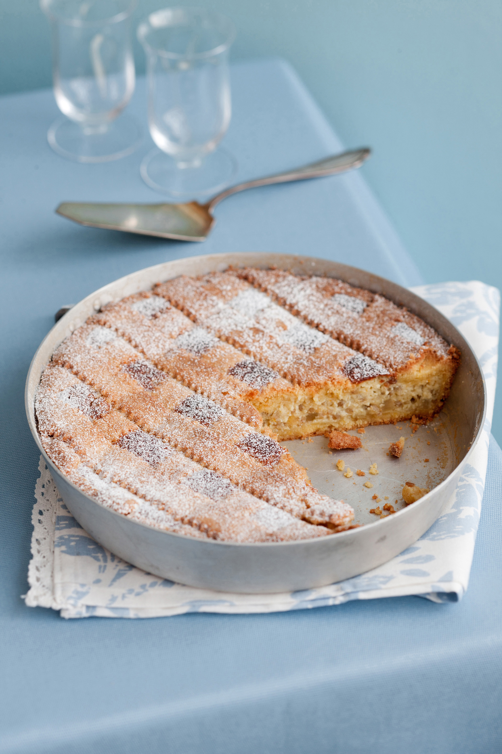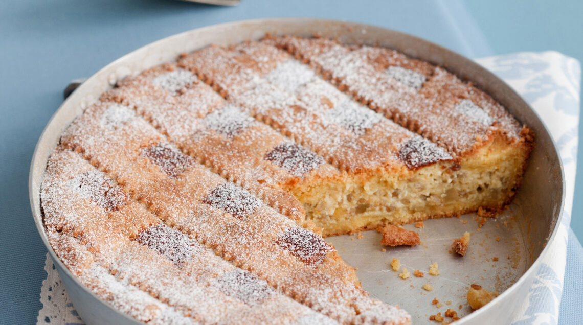 , preparata con una base di pasta frolla e una farcitura di grano, ricotta, canditi, uova, acqua di fiori d’arancio. Dopo la cottura in forno viene cosparsa di zucchero al velo.