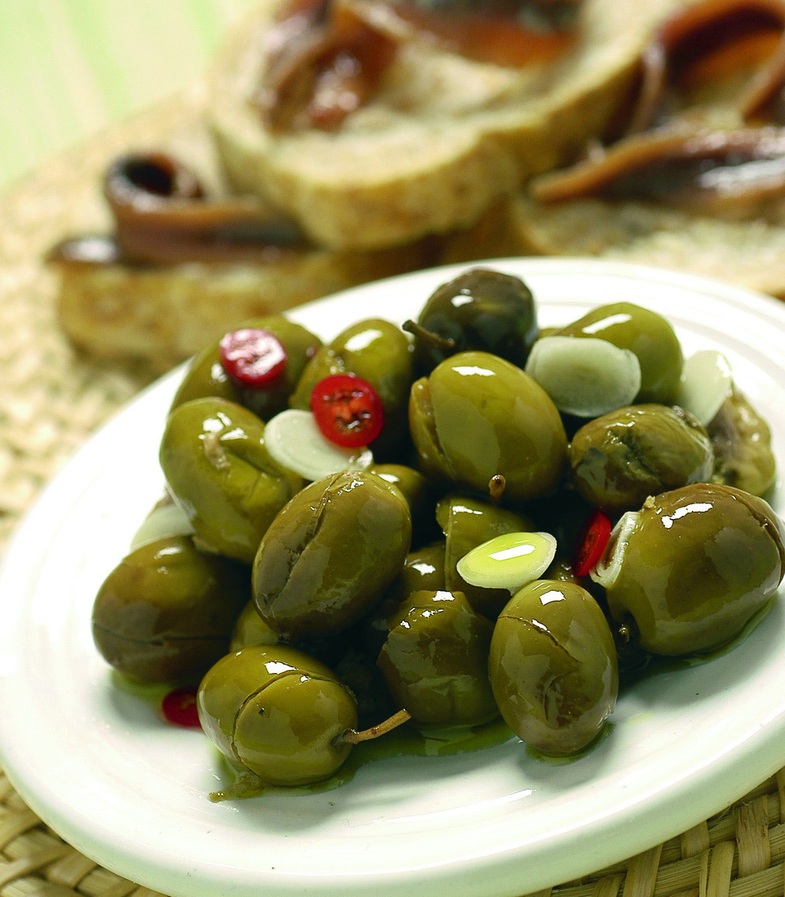 olive verdi da tavola, infatti, si raccolgono acerbe, tra settembre e ottobre, a differenza di quelle nere, che vengono prelevate mature, in inverno. Dopo la raccolta (che per le varietà più pregiate avviene a mano e direttamente dalla pianta, la cosiddetta “brucatura”) e la selezione per calibro, le olive verdi vengono immerse in una soluzione per rimuovere parte del loro sapore amaro.