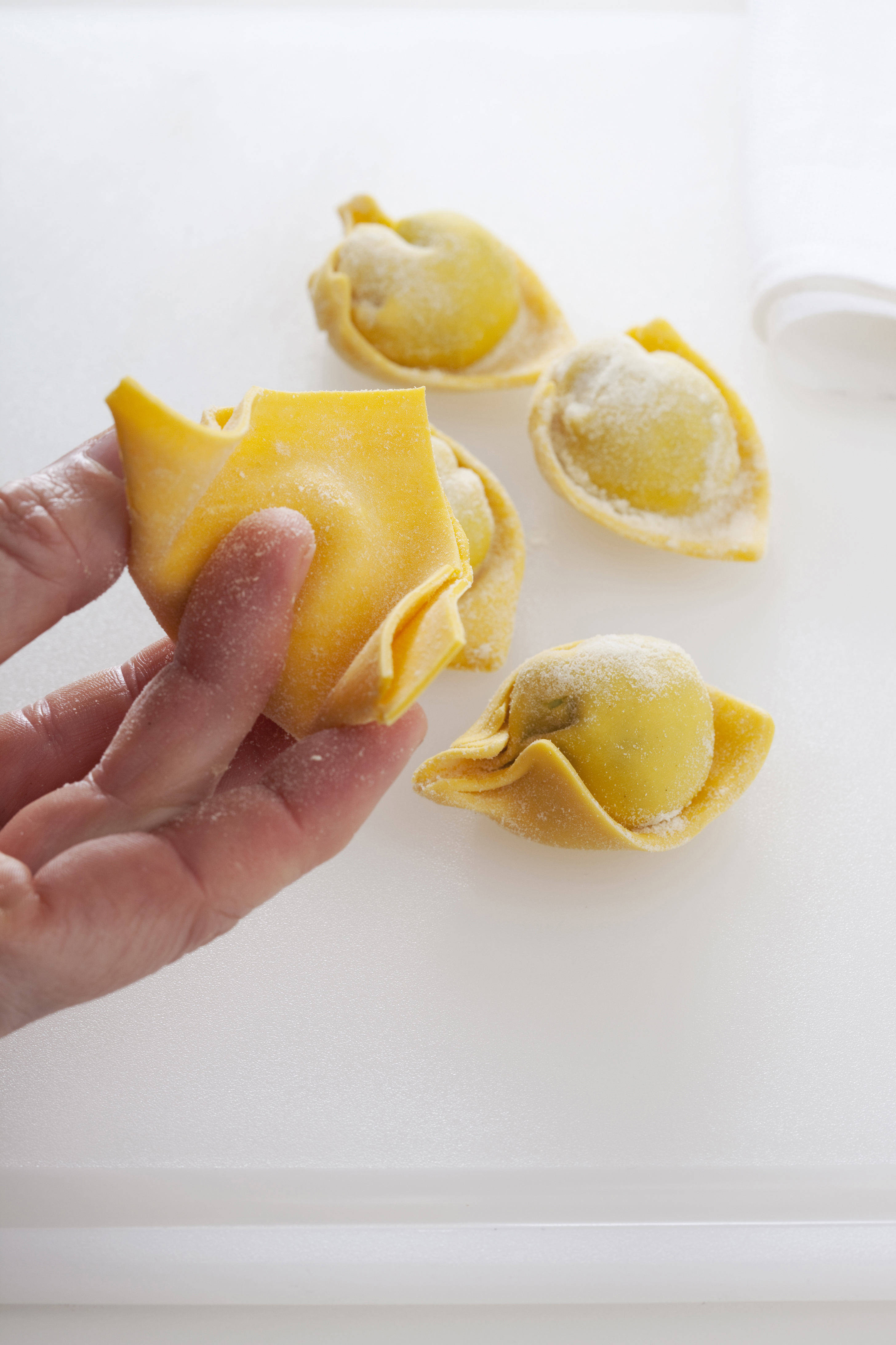 cappelletti romagnoli, invece, hanno una farcia di petto di cappone, tre diverse qualità di formaggio, uova, un po’ di scorza di limone. Anche questi vanno cotti e serviti in brodo, preferibilmente di cappone.
