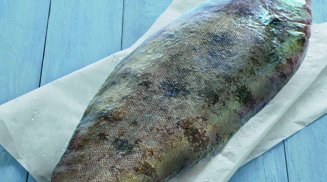 corpo quasi perfettamente ovale, allungato, e può arrivare a un massimo di 60 cm. La pelle è coperta da piccolissime squame che danno una sensazione di ruvidezza al tocco; quella scura va sempre asportata prima di