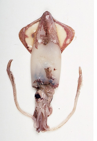 mollusco cefalopode con 10 tentacoli e corpo a sacca, che termina con 2 pinne disposte a punta di freccia. La pelle è di colore rosato che sfuma nel giallastro; la lunghezza può raggiungere il metro.