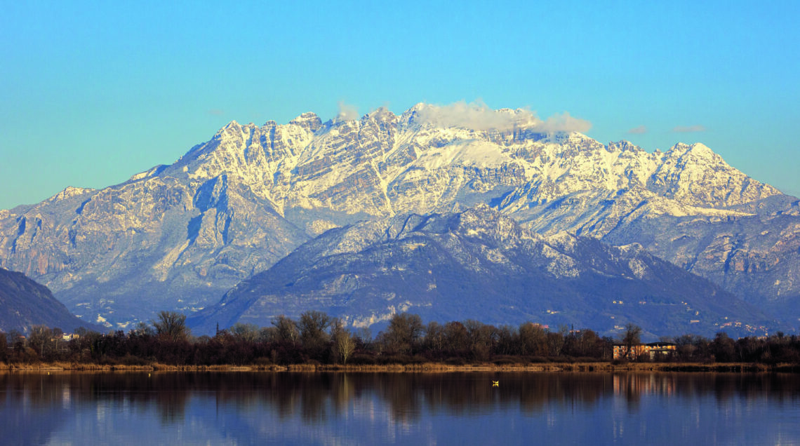 Il monte Resegone si specchia nel lago di Alserio. Credit: Adobe Stock