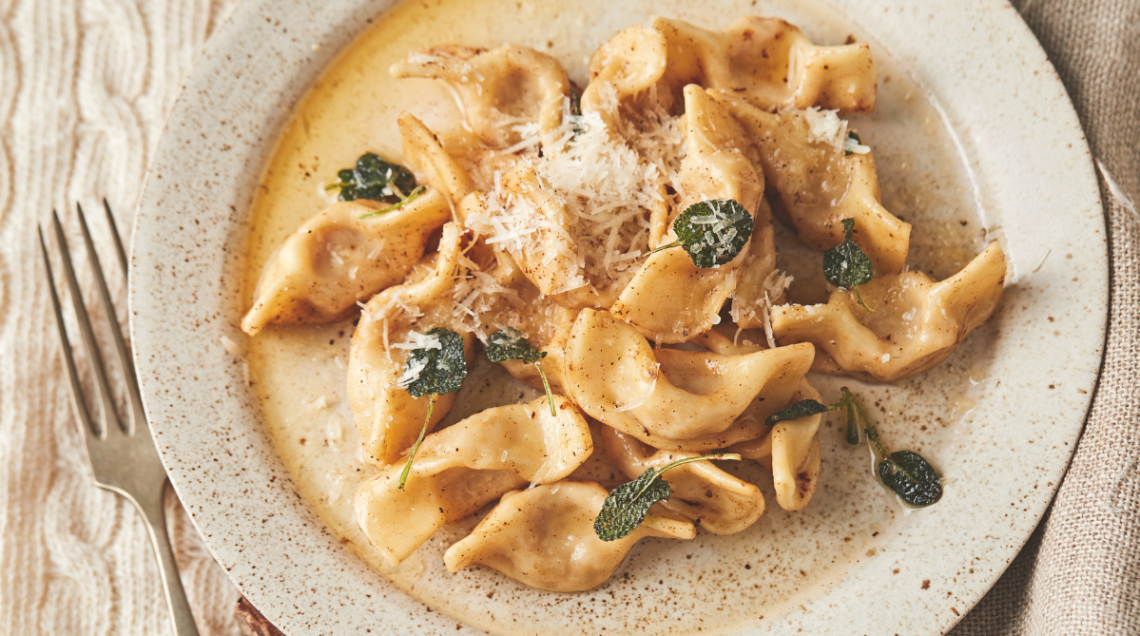 600 g di farina + quella per la lavorazione, 3 uova, 430 ml di latte, 250 g di mollica di pane raffermo grattugiata, 400 g di grana padano Dop grattugiato, 1 ciuffo di prezzemolo, 1 mazzetto di salvia, 320 g di burro, sale