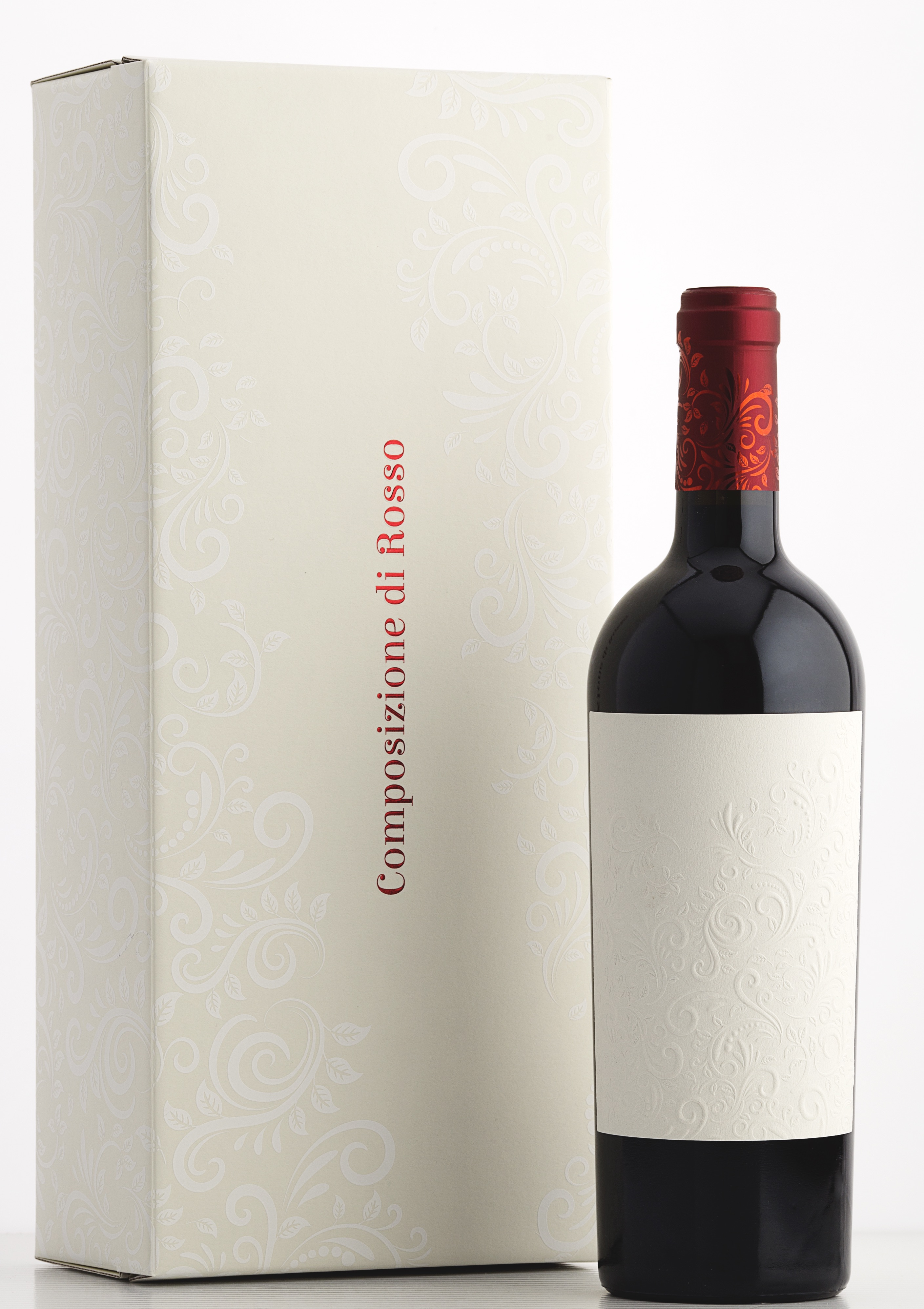 "Udito (il vino che scende nel bicchiere), vista (colore, trasfarenza), olfatto (i profumi), gusto (al palato): bere il vino è un fatto di sensi. Un'esperienza quasi completa, perché manca solo il tatto. Per questo abbiamo pensato a un vino particolare, realizzato in quantità limitata, con tre varietà: Merlot, in parte appassito su graticci, Cabernet Sauvignon e Pignolo, maturati in barrique americana. L'etichetta è stampata a mano e in rilievo: così Composizione di rosso è (anche!) un vino da toccare, tenere in mano, coccolare. Perfetto per un'occasione conviviale. E conclude: "Un vino da distrazione". Distraiamoci, ne vale la pena.