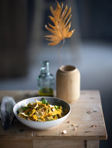 Fanno musica da mangiare. E cucina da ascoltare. Il trio reggiano Food Ensemble trasmette molte emozioni, diverse e piacevoli. Lo fa esibendosi sul palco di un teatro, attrezzato con una cucina provvista degli utensili per preparare piatti ottimi e creativi come quelli che pubblichiamo in questo servizio. Non si tratta però di uno show cooking come tanti altri ma di un vero concerto, in cui lo strumento è il cibo. Mentre lo chef Andrea e il sous chef Marco sono intenti a tagliare, pestare, spezzettare, friggere, bollire o frullare, Francesco si dedica alla campionatura dei rumori emessi dagli ingredienti e dalle tecniche di preparazione trasformandoli in brano musicale. "Registro i suoni in tempo reale e poi li riproduco manipolandoli con strumenti elettronici. Li trasformo in una ritmica che diventa la parte portante del brano. Quando la composizione raggiunge il suo culmine, i piatti si riempiono, la musica esplode e gli spettatori gustano la ricetta", ci spiega il musicista. "L'effetto è un bombardamento di stimoli che genera grande coinvolgimento", assicura lo chef Andrea. "Proprio come in un rapporto d'amore, lo spettatore passa da una fase di stupore a una di eccitazione, per finire con il momento della coccola, del rilascio del piacere, uno stato di assoluto benessere". Ma quali cibi sono più "intonati"? "Le nostre ricette (5 a spettacolo) cambiano, ma sicuramente non si può fare a meno della croccantezza. Un sedano freschissimo che si spezza ha un suono irresistibile, così come il pane fragrante, la frutta secca da sgusciare e far saltare in padella. Rendono molto anche le chips che sfrigolano nell'olio, il coltello che trita il soffritto, il frullatore che trasforma le salse in crema", ci svela Marco, il fonico e sous chef che per catturare al meglio ogni tipo di rumore sceglie il microfono ideale. Quest'anno lo spettacolo prevede importanti novità. Tra queste, un assolo di fermentati attraversati da un fascio di luce. Al variare della luminosità, cambiano le note emesse dai vasi. E tra il pubblico l'acquolina certamente salirà.