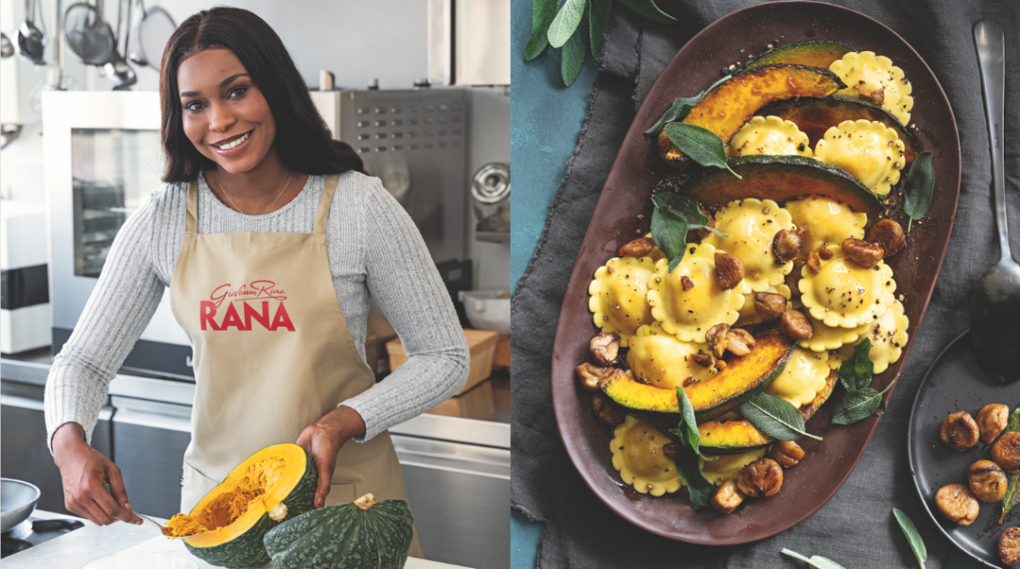Marième Gueye è arrivata a Bergamo da bambina dove ha frequentato l'istituto alberghiero. Dopo il diploma la giovane senegalese si prefiggeva di lavorare in un ristorante, ma la sua vita ha preso un corso diverso. Accadde quando insieme alla famiglia fu invitata a casa Rana. Era stato Gian Luca in persona a voler festeggiare il loro trasferimento a Verona, per avvicinarsi allo stabilimento dove papà Gueye faceva il manutentore. "Fu una serata indimenticabile", ci racconta Marième, "cucinammo tutti insieme. Io preparai un piatto senegalese, Gian Luca Rana e suo figlio mi aiutarono". L'abilità di Marième e forse il suo spirito di iniziativa non passano inosservati e pochi giorni dopo eccola entrare nello stabilimento per essere presentata ai nuovi colleghi. "Mi chiesero in quale ruolo mi sentissi più a mio agio e io non avevo dubbi, ero incantata dalle cucine, più belle di quelle di MasterChef. Infatti preparai il pranzo per l'intero reparto". E così la destinazione fu decisa: settore "ricerca e sviluppo", lì dove, cucinando, nascono i nuovi prodotti. Quella di Marième è una storia di realizzazione, una delle molte di cui il pastificio veronese va fiero. La valorizzazione delle persone, insieme alla dimensione umana e familiare sembrano proprio motori fondamentali del suo successo. Ancora oggi il signor Giovanni, fondatore, passa a salutare gli operai e augurare loro una buona giornata, il figlio Gian Luca conosce ogni dipendente e apre la sua casa ad ogni occasione di convivialità e condivisione. E poi c'è Antonella, sua moglie, che si occupa di comunicazione e ha la capacità di mettere tutti a proprio agio: "Stamattina mi ha chiamata per rassicurarmi che questo servizio sarebbe andato bene", ci svela Marième che così anche ai fornelli di Sale&Pepe ha ritrovato tutta la sua sicurezza preparandoci un goloso piatto di Gioiaverde alla zucca con zucca, castagne e salvia fritta.
