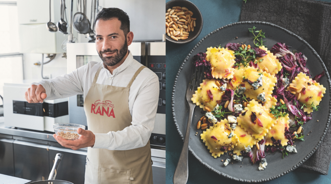 Non tutti sono arrivati con le idee così chiare. Matteo Piccolo, anzi, era piuttosto confuso: nel cassetto aveva un diploma di grafica, ma forse quella non era la strada giusta per lui. Per mettere ordine nelle idee, decide di passare un anno in Rana e lì, tra impastatrici e sfogliatrici, incoraggiato da quell'aria di famiglia che si respira in azienda, avviene la trasformazione. Il giovane veronese fa esperienza in tutti i reparti appassionandosi al lavoro. Così nel 2012, quando Gian Luca Rana inaugura il primo impianto negli Stati Uniti, Matteo lo accompagna oltreoceano per partecipare all'organizzazione dello stabilimento. "Mi ha dato l'opportunità che aspettavo", dichiara. Da quando è tornato, si occupa soprattutto di selezione delle materie prime. "Da Gian Luca Rana ho imparato che si può sempre fare meglio, anche se i nostri concorrenti, di fatto, siamo noi stessi". Oggi questa filosofia è diventata sua. Per noi ha cucinato un piatto di Sfogliavelo al gorgonzola con radicchio, briciole di zola piccante e pinoli