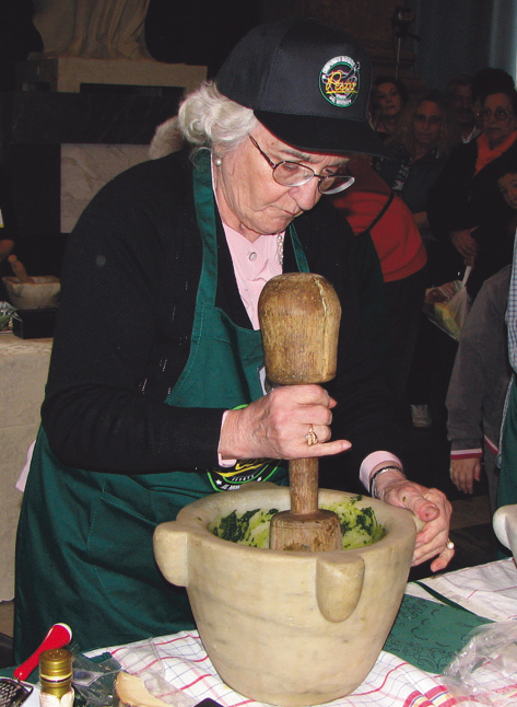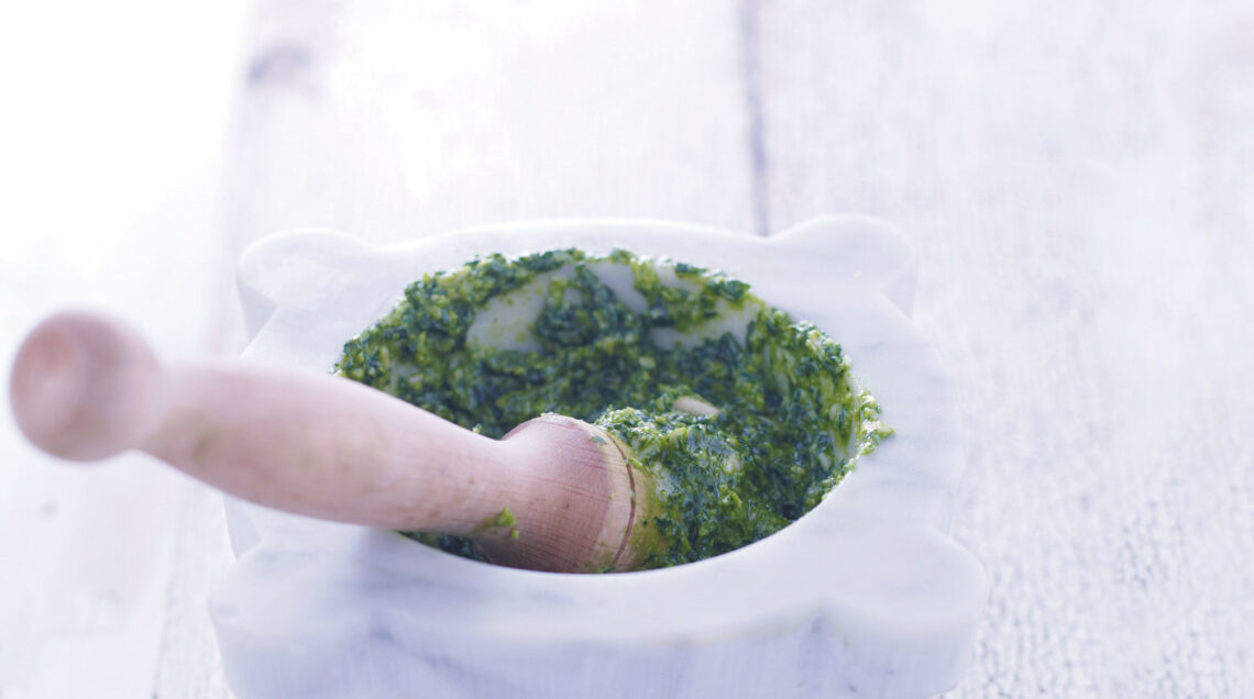 L’unicità del pesto genovese è tutta nello straordinario gioco di equilibri di questi sette ingredienti, come vuole la ricetta ufficiale della salsa fredda più diffusa nel mondo occidentale. E anche tra le più imitate. Ma è in Liguria che si coltiva il “top” del suo ingrediente di base, il pregiato basilico genovese Dop. Ed è qui che viene prodotto l’extravergine più vocato ad esaltarlo, il Riviera ligure Dop. Come è squisitamente ligure l’arte di preparare salse al mortaio, da quella di noci all’agliata.