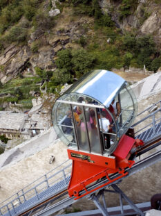 Il secondo castello da non perdere è quello di Verrès, costruito all’imbocco della Val d’Ayas, che, ai suoi tempi, doveva intimorire nemici e assedianti, dotato com’era di cannoni e bombarde. Appollaiato come un nido d’aquila su uno sperone roccioso, il castello si raggiunge dopo una ripida salita su un sentiero acciottolato, ma la vista che si gode da lassù è impareggiabile e ripaga di ogni fatica: da un lato, infatti, si apre la Val d’Ayas, dove troneggia il Massiccio del Rosa, dall’altro, come su un atlante, si legge il corso della Dora. L’interno della fortezza non ha niente a che fare, però, con l’eleganza raffinata di Issogne: Verrès era e rimase un castello militare e quindi la mission degli architetti fu quella dell’essenzialità degli impianti. Unici preziosismi una grande sala da pranzo con tre camini e uno scalone monumentale in pietra che mette in comunicazione i tre piani dell’edificio e sembra uscito da un disegno di Escher.