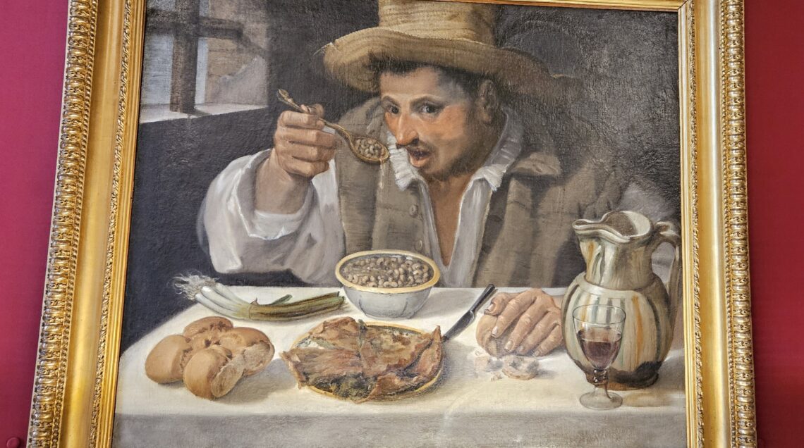 Una ricetta che prende spunto dal modesto ma significativo piatto dipinto a fine Cinquecento (oggi conservato a Roma, a Palazzo Colonna) e lo reinterpreta in chiave contemporanea all’insegna dell’eleganza e della sostenibilità. E lo fa dialogare con gli affreschi dipinti dagli allievi di Carracci sulla volta della sala del ristorante, ospitato all’interno dello storico Grand Hotel Majestic, unico 5 stelle lusso di Bologna, a pochi passi da piazza Maggiore (via Indipendenza 8). E così “Il Mangiafagioli” torna a dominare la scena, come ha fatto per secoli introducendo la pittura di genere in Italia e dando dignità anche ad alimenti umili come i legumi. Un dipinto tanto significativo da essere stato scelto per la copertina de “Il talismano della felicità” di Ada Boni, che dal 1925 e per gran parte del Novecento è stata la "Bibbia" della cucina casalinga italiana, immancabile ricettario regalato a tutte le giovani donne pronte al matrimonio.