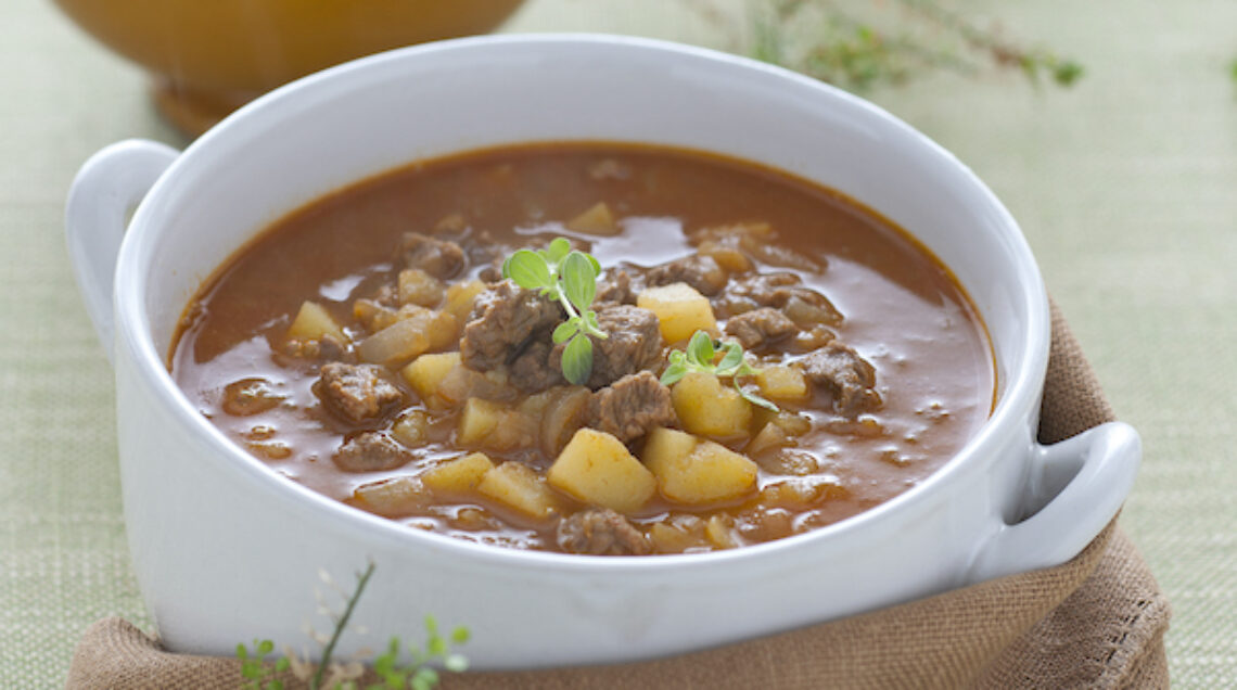 600 grammi di manzo (collo o spalla), 3 cipolle, 3 spicchi d’aglio, mezzo sedano rapa, 1 peperone, 1 pomodoro maturo, 3 carote, 6 patate, 2 pastinache, 3 cucchiai di strutto, 1 cucchiaino di sale, mezzo cucchiaino di cumino in polvere, 1 cucchiaino di paprica, 1 litro di brodo vegetale
