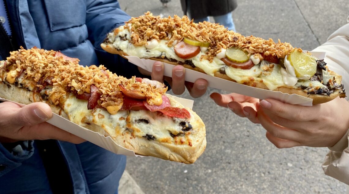 Il panino simbolo della città: carne di maiale stufata, sottaceti, senape e cipolle in pane a lievitazione naturale, generosamente bagnato dalla salsa di carne. Un parente del pulled pork e dell’hamburger, impacchettato ben stretto nella carta per non fare uscire il sugo. Attenzione a non macchiarsi i vestiti: si mangia in piedi a gambe aperte!