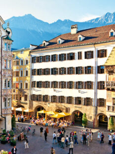 Sempre alla RathausGalerie vale la pena di salire sulla terrazza del Cafè Lounge 360° da dove si scopre tutta la città. E poi c’è il nuovo edificio del Kaufhaus Tyrol, progettato da David Chipperfield, che ha sperimentato anche qui la sua “architettura a finestre”. Se si vuole però continuare con la “passerella” dei monumenti, non c’è che l’imbarazzo della scelta: ecco l’Altes Rathaus, l’antico municipio sovrastato da una Torre del ‘400, e il Neuer Hof, con il famoso “Tettuccio d’oro”, un balcone coperto da più di 2500 tegole di rame dorato, da dove gli imperatori si affacciavano per ricevere l’omaggio dei sudditi.
