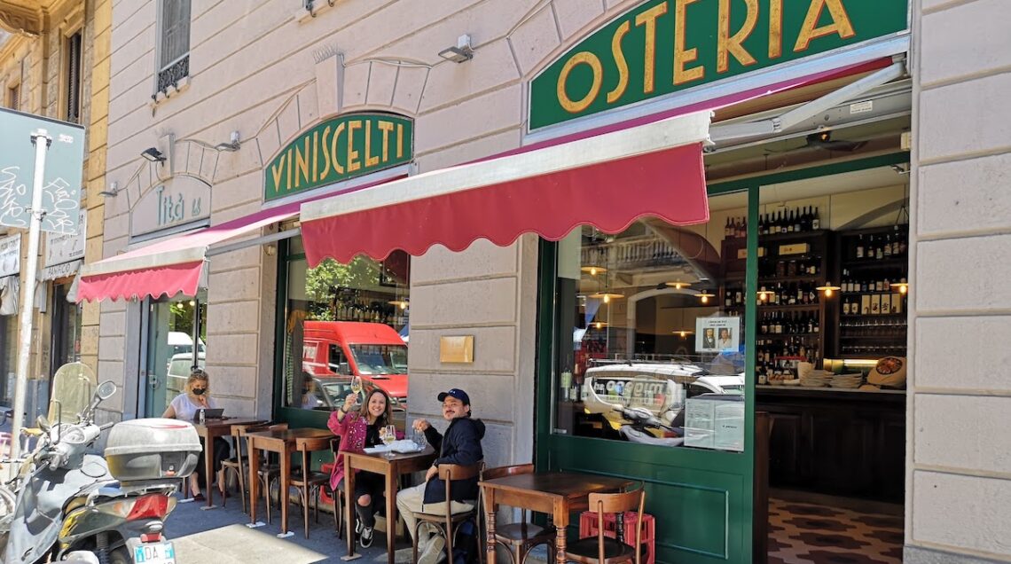 La solita lavagna riporta i piatti del giorno. Ci sono i crostoni: con tastasal (una sorta di salsiccia fresca veronese) e friarielli, tartare di pecora, ventricina (altro salume morbido tipico del teramano) e stracciatella, cotto e rafano. Ci sono taglieri misti con coppe di testa, soppressate, caciocavalli, tome. Ci sono i piatti caldi (“abbiamo un ottimo microonde!”): lumache, trippa in umido, würstel, pastisada de caval, altra specialità veronese. C’è l’omaggio a Milano con i nervetti, al Piemonte con le giardiniere, alla Puglia con le fave in cravatta, legumi tostati e croccantissimi da sgranocchiare fra un sorso e l’altro. Ma c’è molto di più perché il cibo, come il vino, cambia con le stagioni e le disponibilità dei singoli produttori. Tutto quel che si vede è in vendita, si può consumare sul posto e, in molti casi, portare a casa. Un’abitudine nata durante il lockdown quando l’Osteria, non ancora aperta al pubblico, funzionava come asporto di panini e gastronomia.