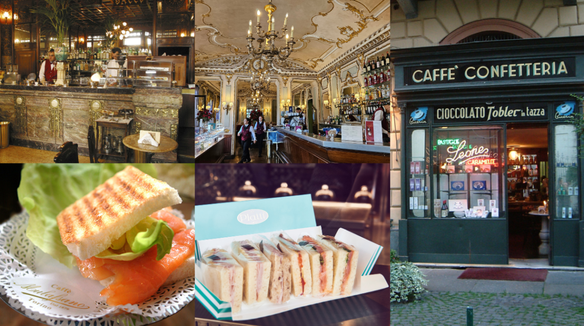 Altro record di Torino: ha ben 13 caffè storici, riuniti nell’omonima associazione. È un “museo diffuso” senza uguali in Italia e capace di soddisfare sia la fame di bellezza sia quella di squisitezze, dolci e salate. Cominciamo da queste ultime il cui capofila è il tramezzino, nato ufficialmente nel Caffè Mulassano nel 1926 da Angela Demichelis Nebiolo (come ricorda una targa nel locale) e così chiamato da quello straordinario copywriter che fu Gabriele D’Annunzio. Nel delizioso locale affacciato su piazza Castello il tramezzino viene proposto in una trentina di varianti (famose quella all’aragosta e quella al tartufo). Buona la scelta anche nello storico Caffè Platti (datato 1875), dove la pausa con questo sandwich farcito resta un rito per i torinesi di ogni età, così come la prima colazione con la pasticceria home made. Un altro rito tipicamente sabaudo è quello che conduce nel piccolo e antico (c’è dal 1763) Caffè Al Bicerin per concedersi un’altra specialità torinese: il Bicerin, riscaldante e corroborante bevanda a base di caffè, cioccolata e crema di latte, evoluzione della settecentesca bavareisa. Da provare anche gli zabaioni fatti al momento, nella versione classica al marsala oppure aromatizzati (delizioso quello al ratafià di ciliegie nere).