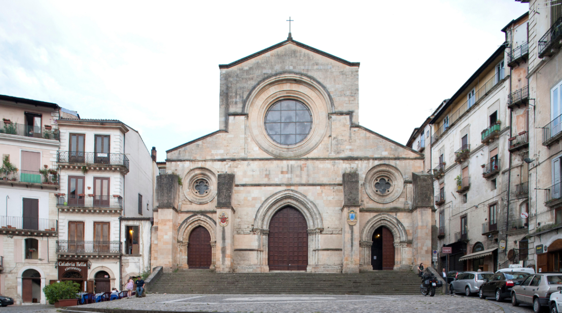 Attraverso corso Telesio, principale arteria della città vecchia, si arriva nella Piazza del Duomo, dove si eleva la Cattedrale (foto sotto), col bollino UNESCO di Patrimonio Testimone di una Cultura di Pace. Tra i più noti e particolari edifici sacri dell’Italia Meridionale, la Cattedrale è uno dei primi esempi di gotico cistercense in Italia e il monumento funebre di Isabella d’Aragona, moglie di Filippo l’Ardito re di Francia, è una ulteriore testimonianza di quanto questo stile artistico fosse diffuso nella regione. Ma anche il Museo dei Brettii e degli Enotri, nel complesso monumentale del Convento di Sant’Agostino, è una testimonianza della lunga e gloriosa storia della città. La struttura, infatti, ospita una vasta collezione archeologica: corredi funerari degli antichi Brettii, ex voto e statue del periodo coloniale greco, stele funerarie dell’epoca romana. Il museo ospita anche una collezione numismatica costituita da monete d’argento e di bronzo, dalla fine del VI sec. a.C. al regno di Vittorio Emanuele II di Savoia e una raccolta di documenti e cimeli relativa alla storia risorgimentale della città. Questa collezione si connette al complesso di Sant’Agostino, all’epoca carcere borbonico, che fu probabilmente l’ultima prigione dei fratelli Attilio ed Emilio Bandiera, poi fucilati nel vicino Vallone di Rovito.