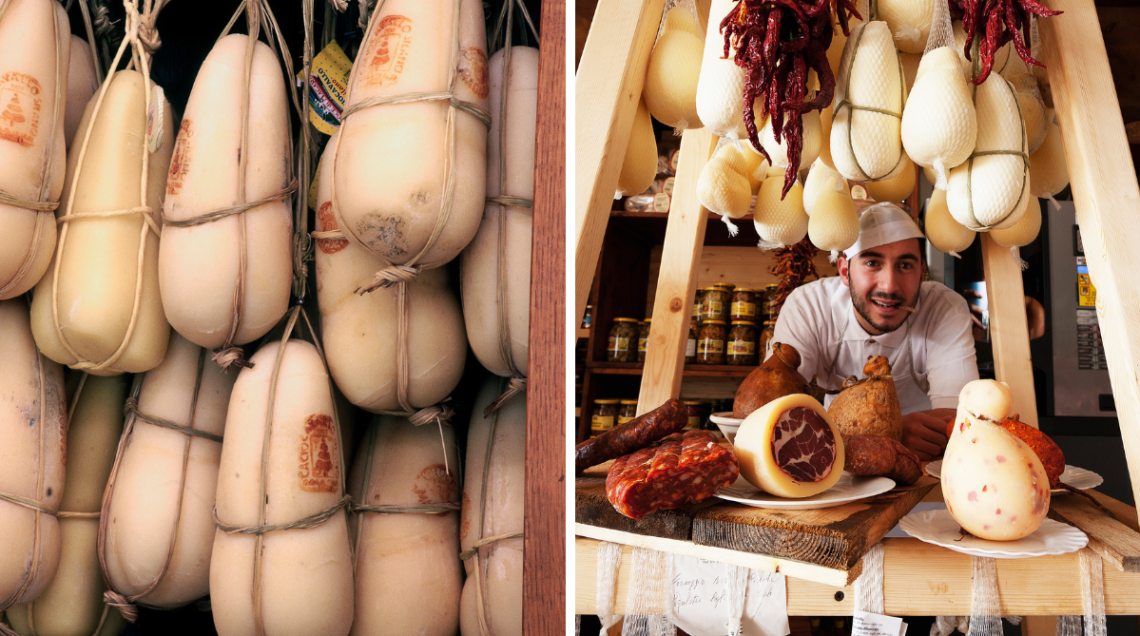 Oltre alle bellezze paesaggistiche, storiche e artistiche, Cosenza custodisce un ricco patrimonio gastronomico fatto di pietanze, sapori e profumi tipici. La gastronomia locale si caratterizza per specialità piuttosto semplici e molto aromatizzate da spezie. Si comincia, ovviamente, dalla ‘Nduja (la tipicissima salsiccia piccante calabrese) e dalla Soppressata, si passa al Caciocavallo Silano (foto sotto), versatile interprete di grissini, primi piatti, medaglioni e frittate, per arrivare alle le paste, protagonista indiscusse delle tavole cittadine. Nei menu cosentini figurano pasta e patate ara tijeddra (tutti gli ingredienti vengono messi a crudo nella teglia e poi cotti al forno), pasta patate e pipareddre (peperoni) fritte, lagane e ciciari (tagliatelle larghe e ceci). Ma poi ci sono i sottoli della Sila, la mùstica (minutaglia di pesce azzurro fatta seccare con peperoncino e poi messa sott'olio), gli involtini con interiora di agnello e il capretto farcito. Tra i dolci tipici, legati soprattutto alle festività religiose, da gustare i Mostaccioli di San Giuseppe, le cui forme tipiche derivano dalle antiche offerte alle divinità, i cuddrurieddri, ciambelle salate preparate in occasione dell'Immacolata e per tutto il periodo natalizio. Anche i turididdri sono dolci natalizi fritti ricoperti di miele e di melassa di fichi, mentre le scaliddre sono coperte di glassa di zucchero.