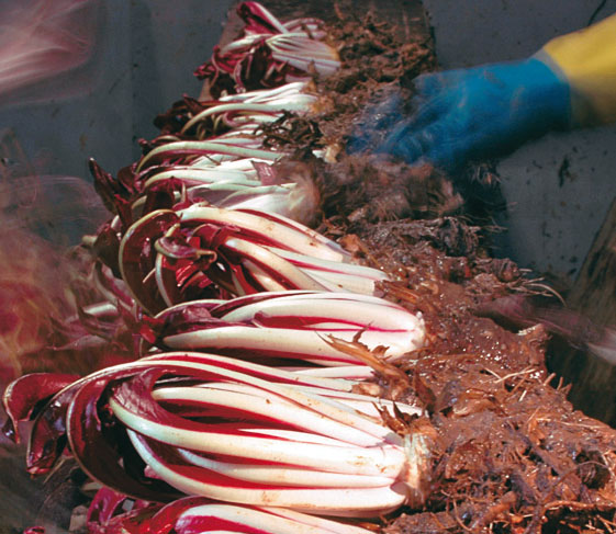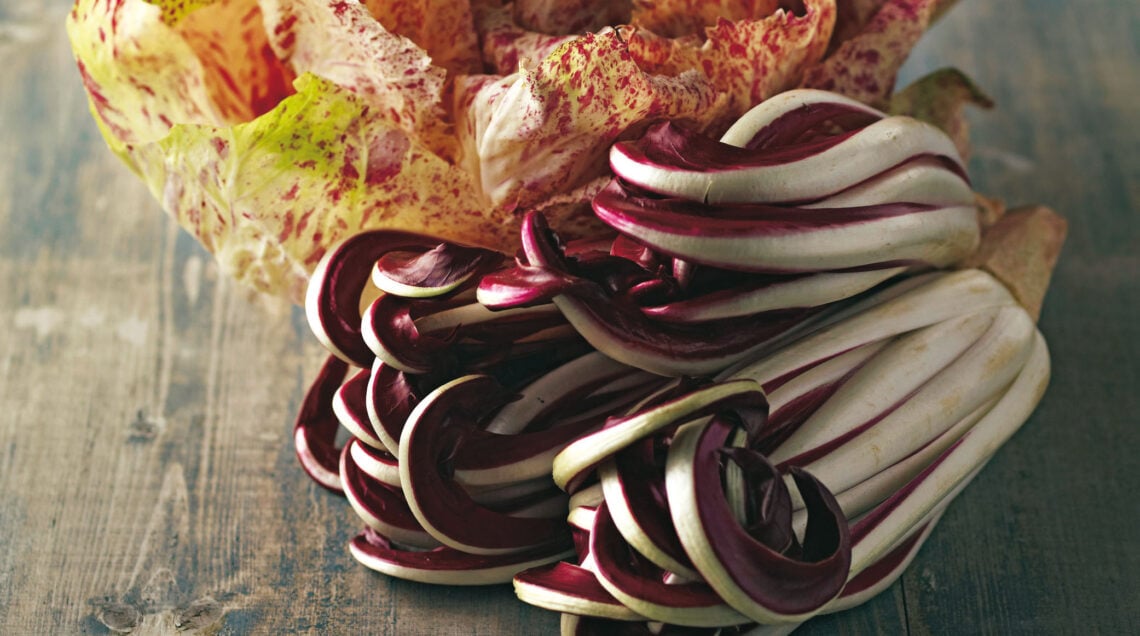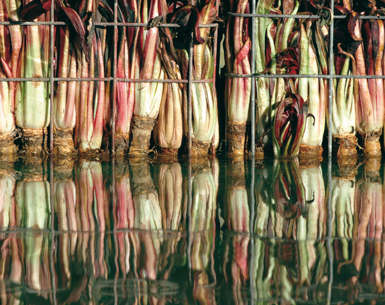 Il confine tra “fiore” e “ortaggio”, per il radicchio, è veramente labile. Uno, il Variegato di Castelfranco, è una sorta di grossa rosa in piena fioritura, aperta e tondeggiante, dalle tonalità pastello. L’altro, il Rosso di Treviso Tardivo, come certi tulipani, è slanciato e con foglie ben serrate, striate dal bianco purissimo delle costole che contrasta con il colore rosso intenso, vinoso, delle foglie. Entrambi prodotti Igp, sono tipiche cicorie trevigiane che nascono dai rigori dell’inverno e proprio al gelo devono la loro particolare croccantezza.