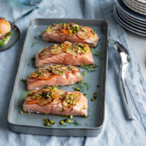 Che sia di carne o di pesce (o entrambi!) il secondo piatto segna un momento speciale nel menu di Natale o di un pranzo di festa. Trionfale, ricco di sapori, aromi, ortaggi e frutta, arriva dalla cucina in effluvio di profumi. Tra i pesci i più comuni sulla tavola invernale ci sono salmone, branzino o baccalà. Tra le carni grandi protagonisti sono gli animali da cortile, come tacchino, tacchinella, cappone o anatra, ma meritano attenzione anche alcuni tagli di manzo, vitello o anche maiale, come lo scenografico carré.