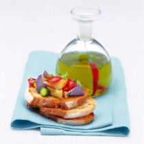 Chiamata in certe zone d'Italia anche "fett'unta" o "panunta", la bruschetta ha origini toscane, laziali e abruzzesi. Il nome, poi diffusosi in tutta Italia, deriva dal termine "bruscato" col quale si definisce il pane, appunto, abbrustolito, cioè arrostito in forno o sulla griglia. Partendo dai condimenti base (aglio, olio extravergine d'oliva, sale e pepe), puoi aggiungere tutti gli ingredienti che la fantasia ti suggerisce.